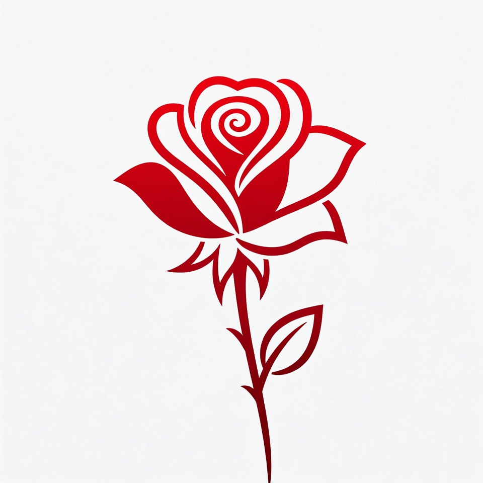 art, beauty, botanical, color, decoration, design, detail, flower, graphic, illustration, leaves, nature, petals, plant, red, rose, shape, spiral, style, white background