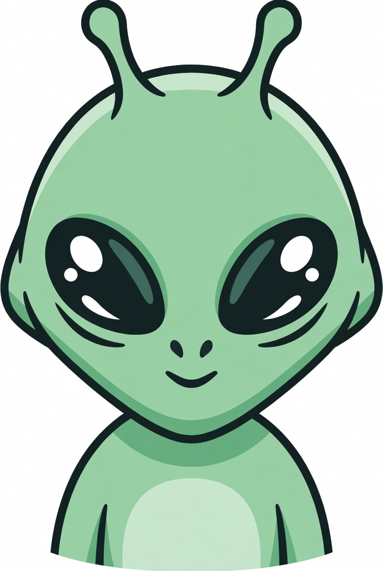 alien, art, cartoon, character, creature, cute, design, eyes, fantasy, friendly, fun, futuristic, graphic, green, illustration, modern, playful, simple, smile, space
