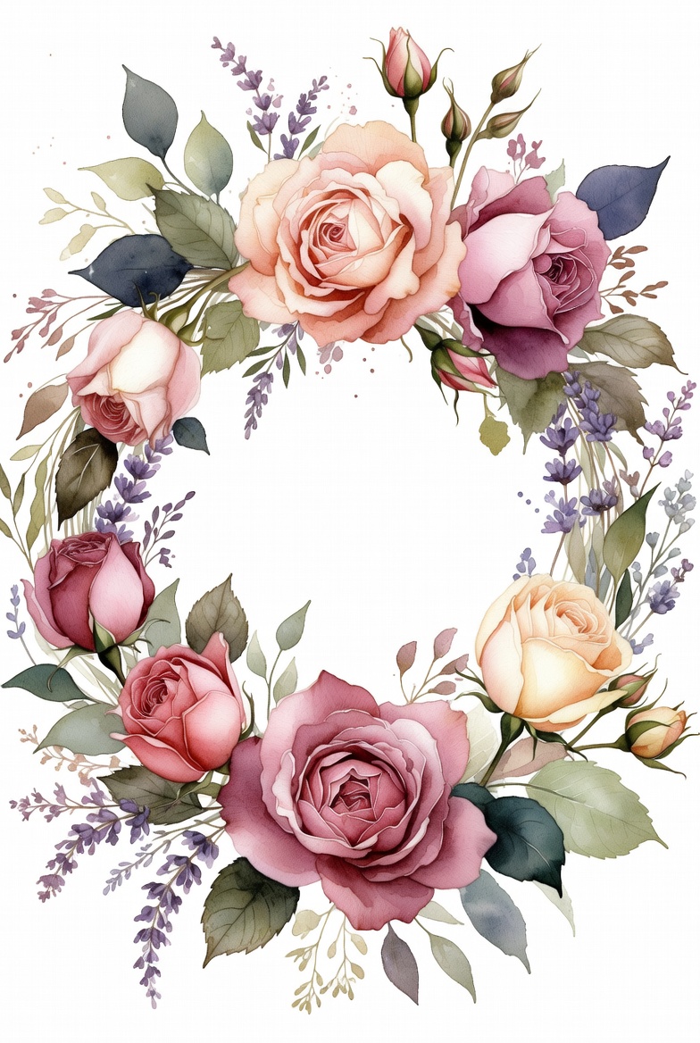 Floral wreath with roses and lavender