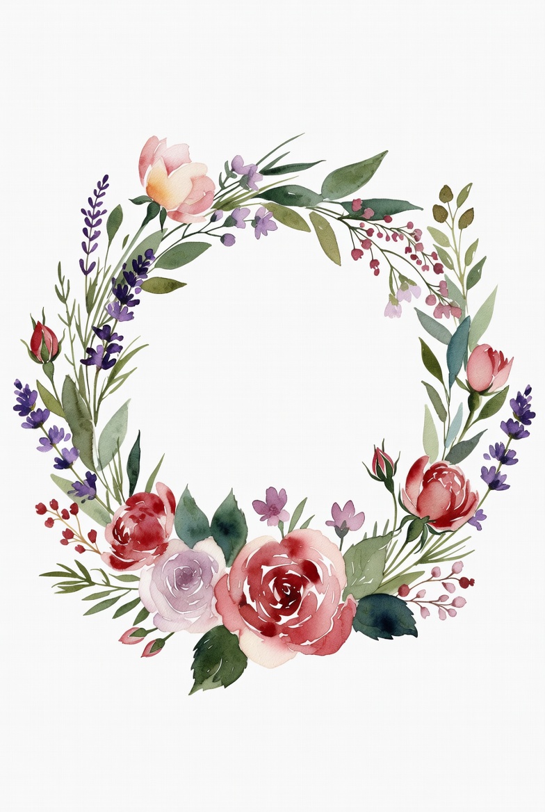 arrangement, art, circular, decoration, design, floral, flowers, garden, greenery, lavender, leaves, nature, pattern, pink, plants, red, roses, spring, twigs, wreath