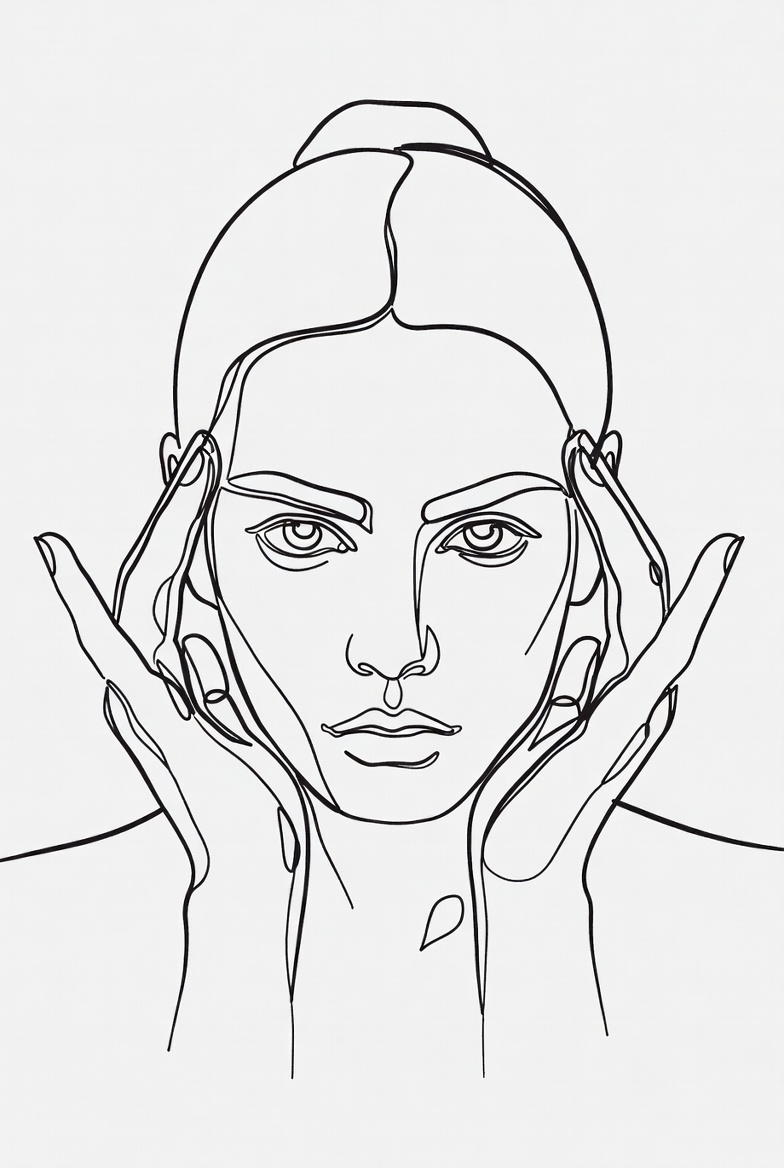 art, beauty, creative, design, emotion, expression, face, features, female, gaze, graphic, hands, minimalist, modern art, outline, portrait, simplicity, sketch, style, woman