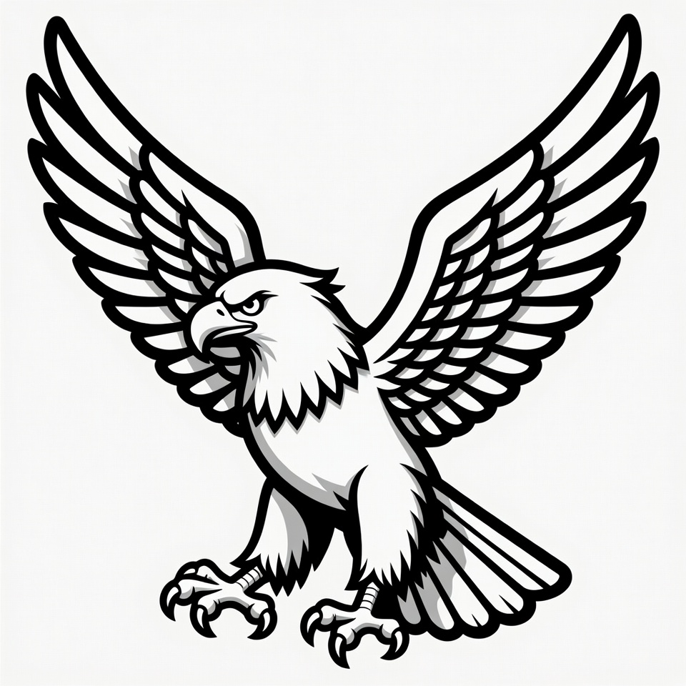 A graphic shows an eagle with large wings spread wide while standing on its claws. The design emphasizes the eagle's powerful stance.