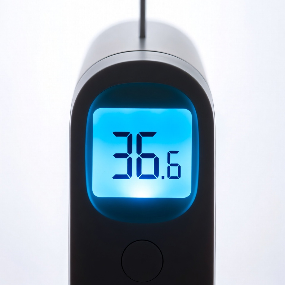 A digital thermometer shows a temperature reading of 36.6 degrees. The display has a blue background for easy visibility.