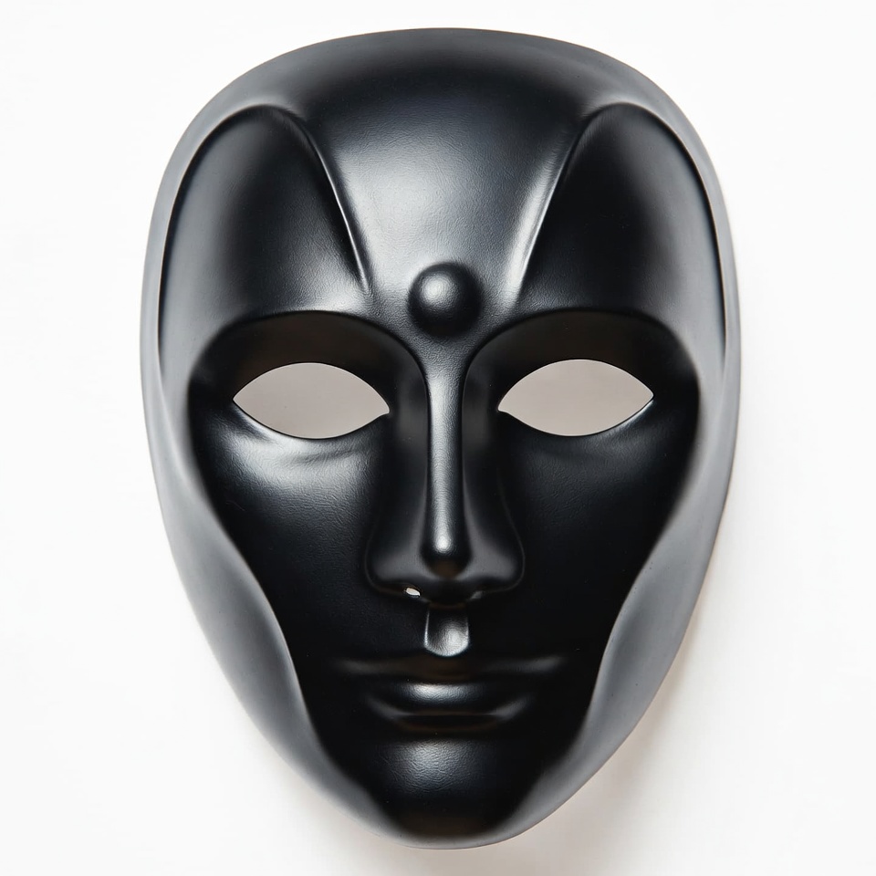 art, black mask, costume, creativity, cultural piece, decoration, design, events, handmade mask, indoor decor, mask design, minimalist, modern art, performances, smooth surface, theater, unique shape, visual art, wall art, wall display