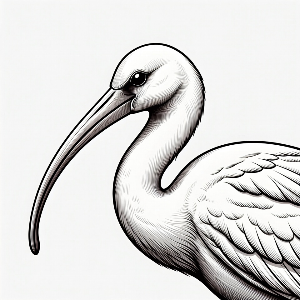 animal, avian, bird, birdwatching, close-up, design, detailed, drawing, elegant, feathers, illustration, long beak, natural habitat, nature, profile, stork, white bird, wildlife, wings, young bird