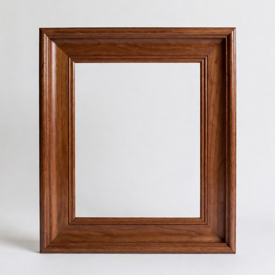 A rectangular wooden frame sits against a plain background. The frame is empty and ready for art or a picture to be added inside.