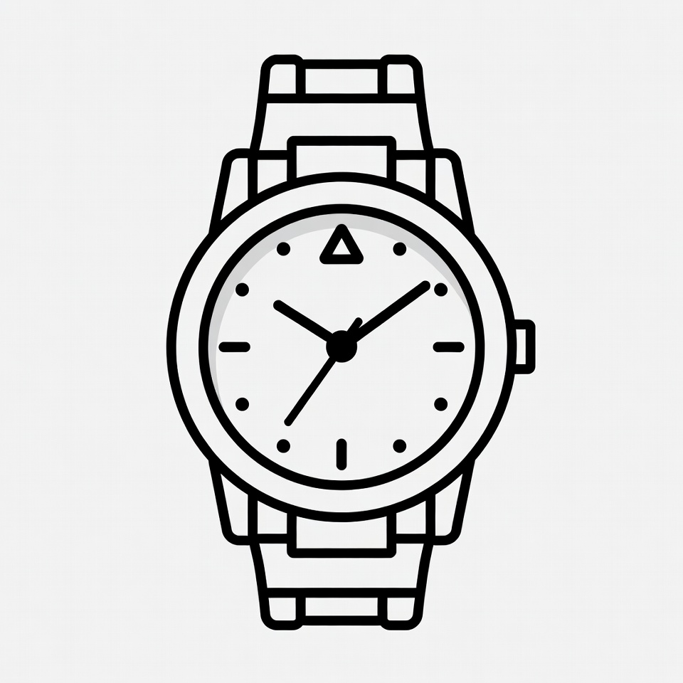 A watch shows a round face with numbers and a metal strap. It rests on a light background, highlighting its features and design.