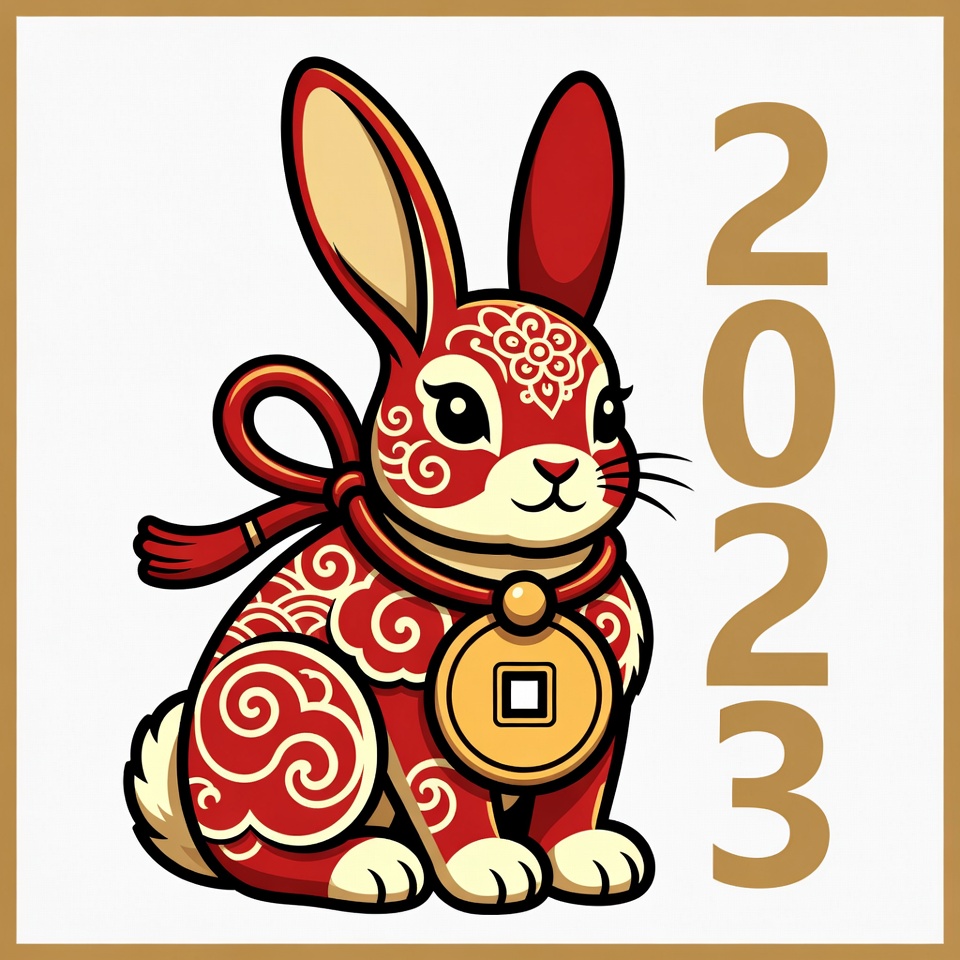 2023, art, celebration, charm, culture, decoration, design, festival, festive, gold, illustration, lunar, new, patterns, rabbit, red, symbol, tradition, year, zodiac