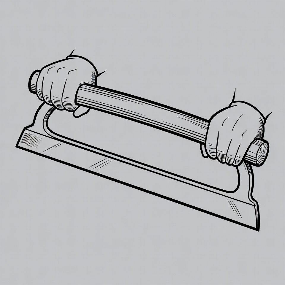 Two hands grip a metal tool designed for work. The tool is simple yet functional, meant for various tasks in a workshop.