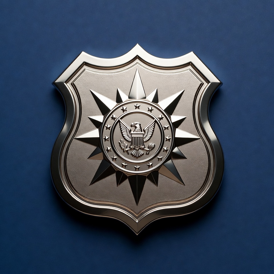 authority, background, badge, blue, center, design, detail, eagle, emblem, graphic, identification, insignia, law, metal, official, police, security, shield, star, symbol