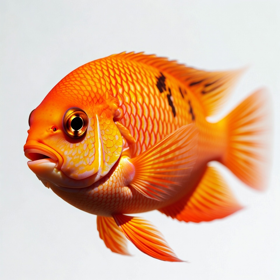 A bright orange fish swims gracefully in clear water. It showcases its fins and scales in this vibrant underwater scene.