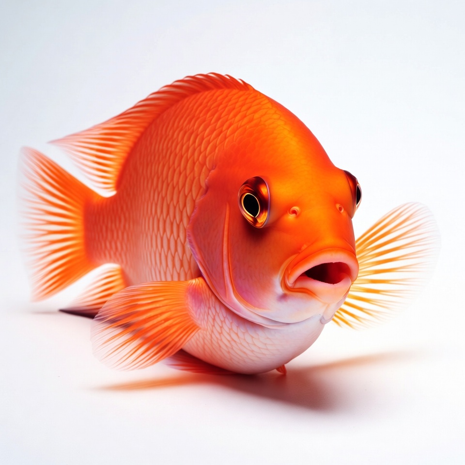 A bright orange fish swims gracefully in clear water. Its fins and scales reflect light in a vivid display of colors.