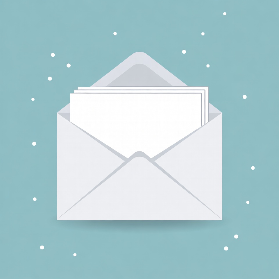 An envelope sits on a simple background. Inside, there are blank sheets of paper waiting to be filled or used for messages.