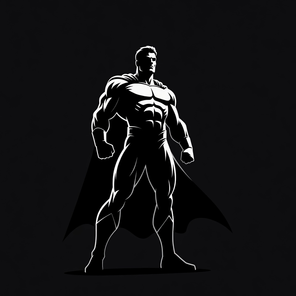 action, action-hero, art, bold, cape, character, comic, courage, darkness, design, fantasy, figure, hero, muscular, night, pose, power, silhouette, standing, strength