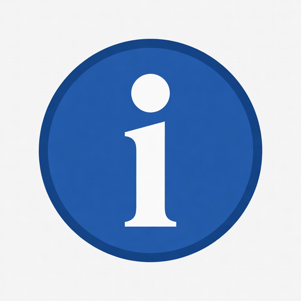 A blue circle with a white letter 'i' in the center is displayed. It represents a source of information or help.