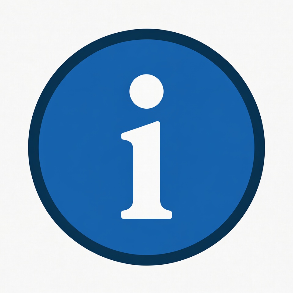 A blue circle contains a white letter 'i' symbol. This design often represents information or guidance. The shape is simple and clear.