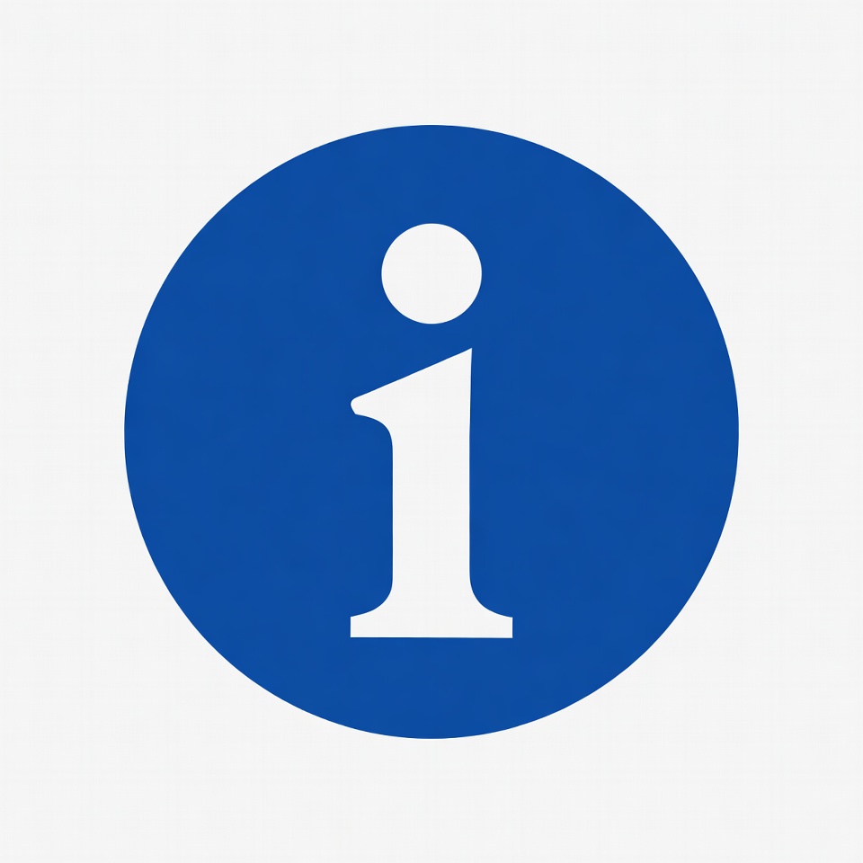 A blue circle features a white information symbol at the center, often used to indicate areas of assistance or details.