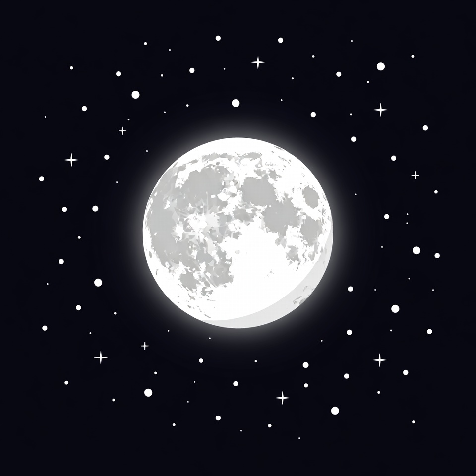 Bright moon in a starry night sky