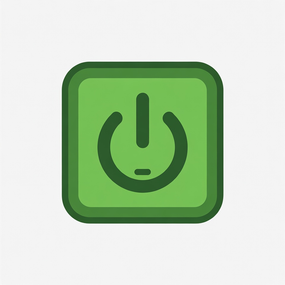activation, circle, connection, control, design, device, digital, electricity, energy, graphic, green icon, interface, modern, power button, sign, switch, symbol, technology, vector, white background