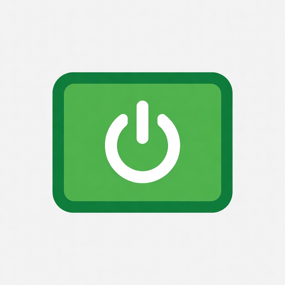 Green power button symbol on a screen