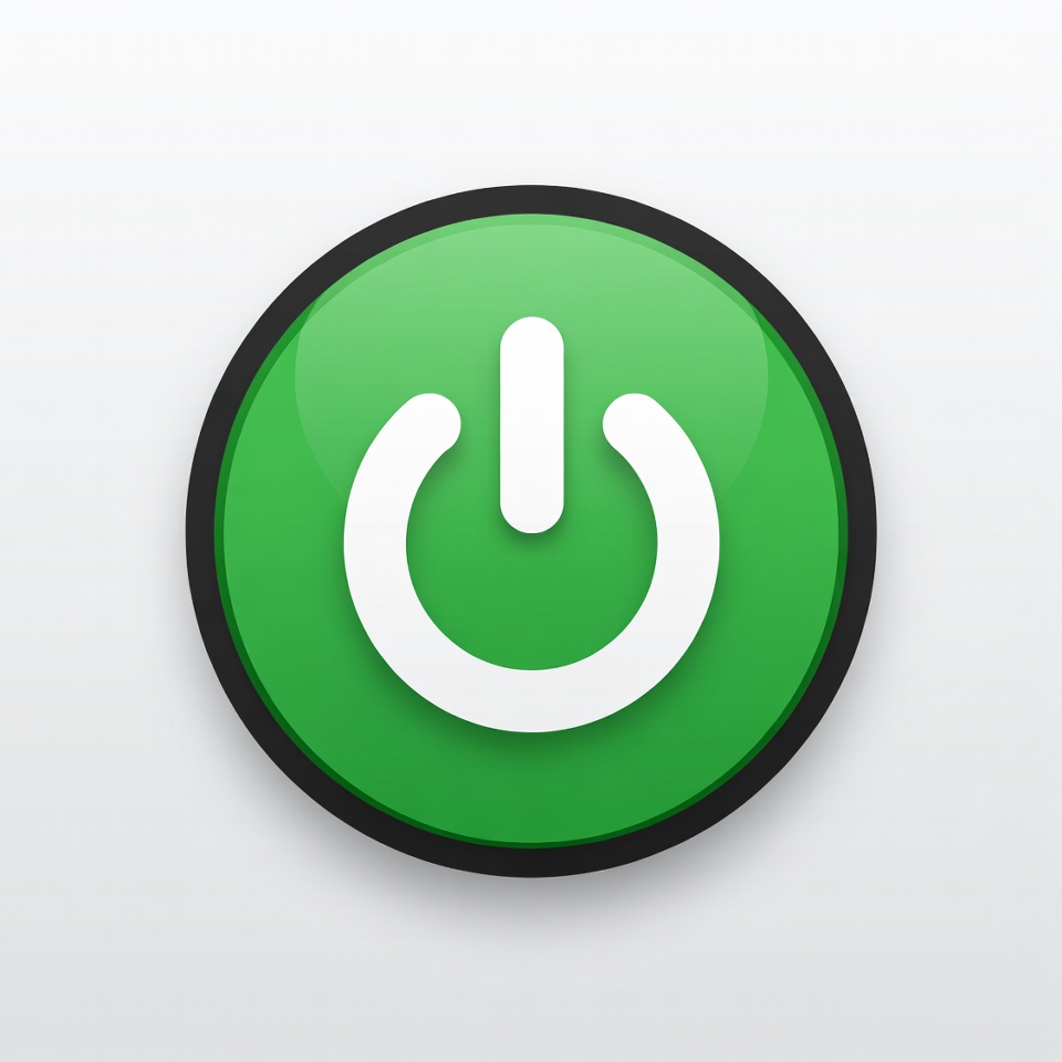 Green button displays a power symbol designed for use in technology and electronics. The image shows a simple graphic representation.