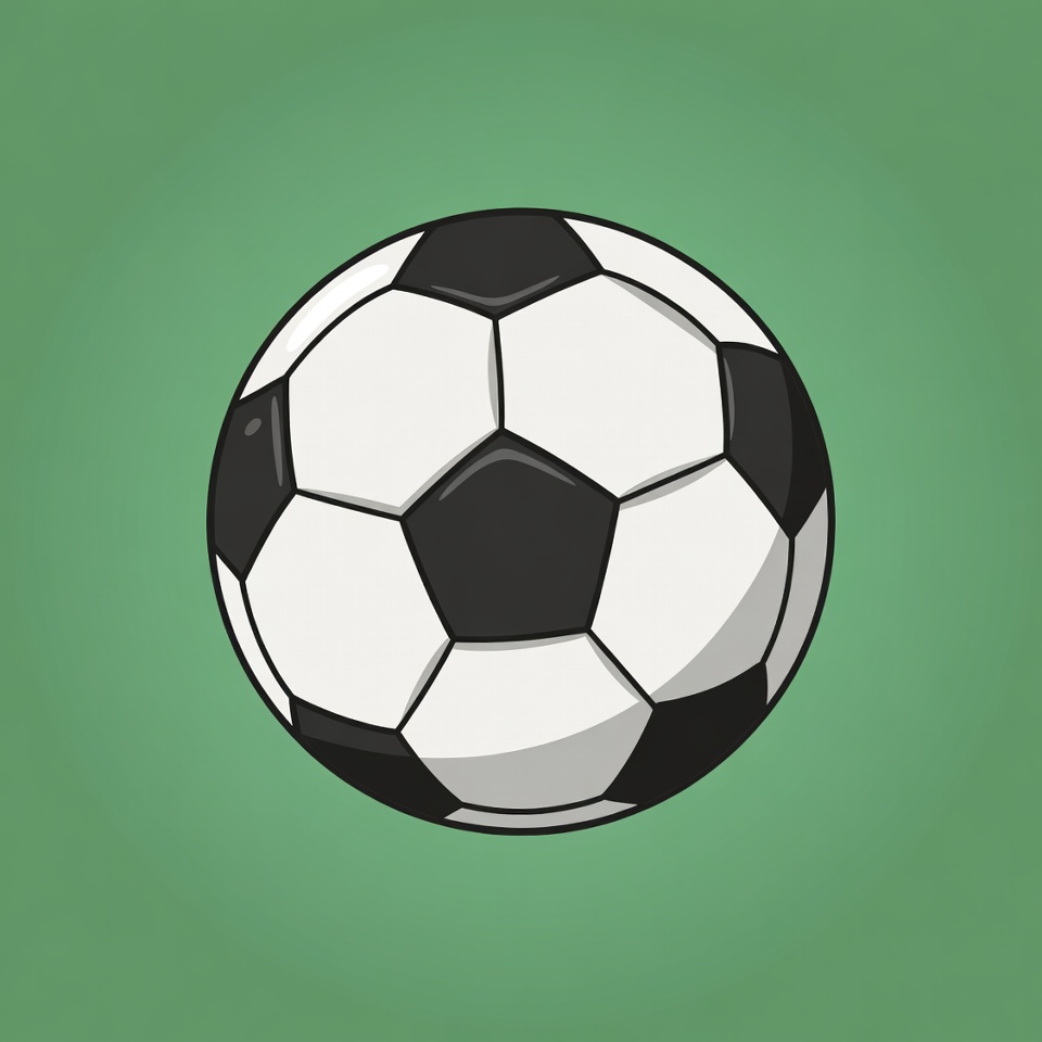 A classic black and white soccer ball rests on a green background. The ball has a hexagonal pattern and is ready for play.