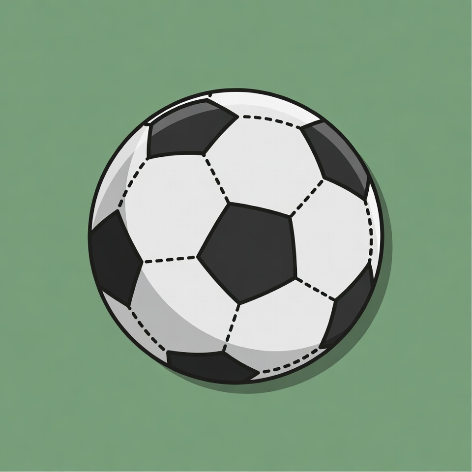 A classic black and white soccer ball sits on a green field with a simple background, ready for play during a sunny afternoon.