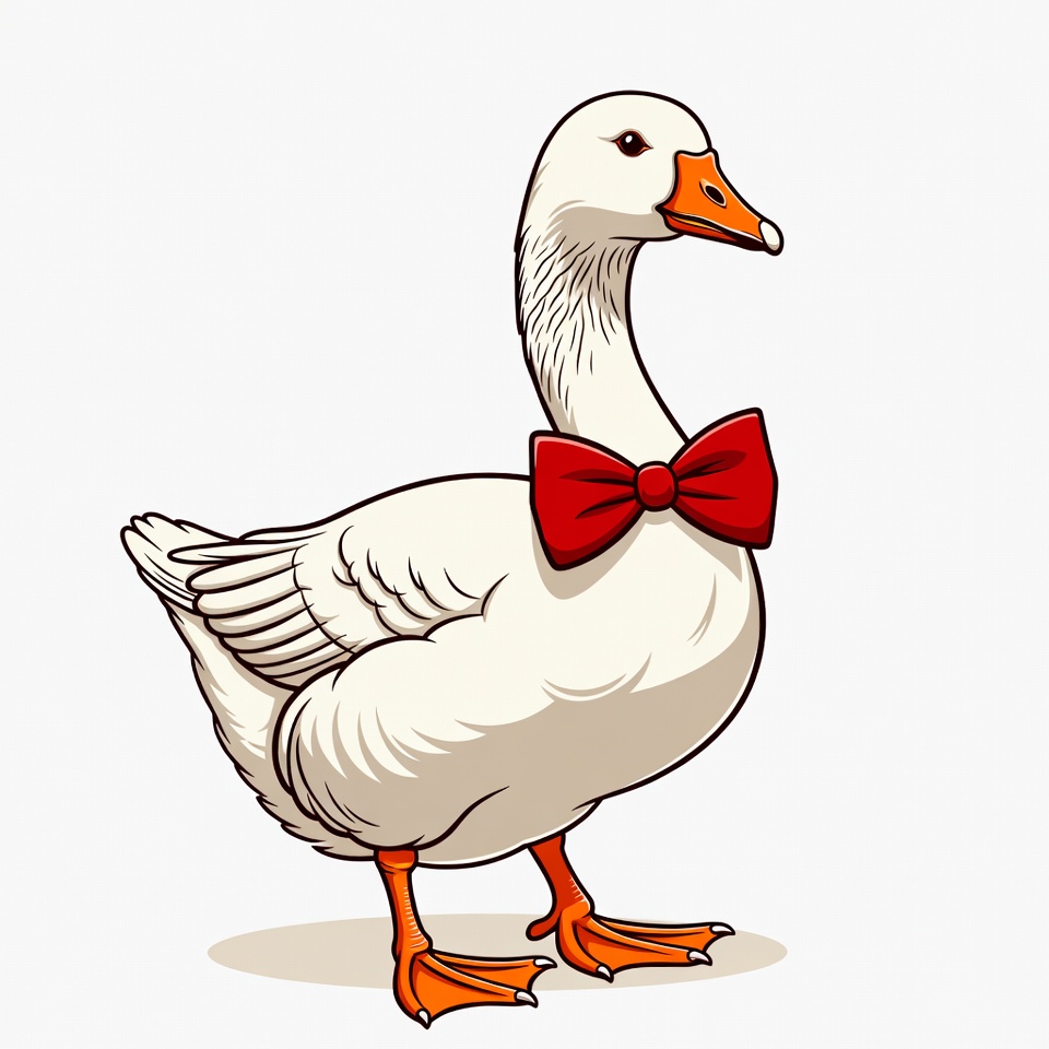 animal, bird, bow tie, cartoon, character, costume, cute, day, domestic, fashion, feathers, fun, goose, illustration, neck, orange, playful, standing, white, wildlife