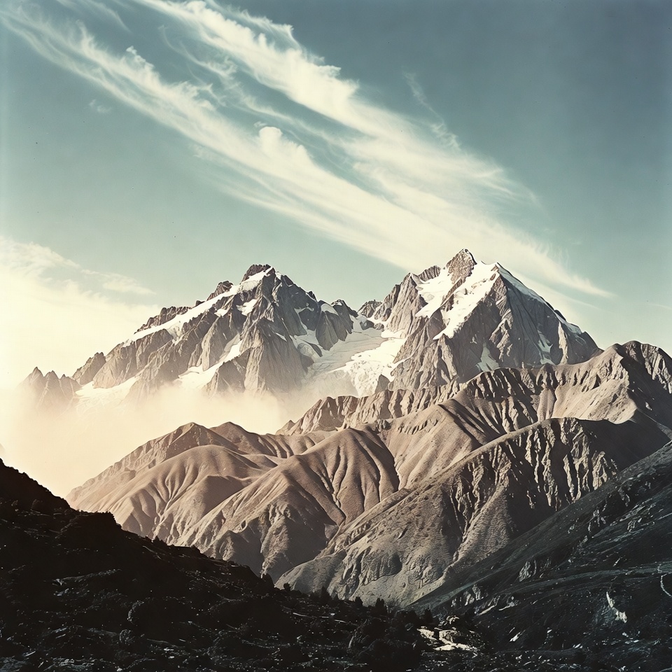 adventure, clouds, environment, exploration, hiking, landscape, mist, mountains, nature, outdoors, peak, rocks, scenery, sky, snow, sunlight, terrain, topography, travel, valley