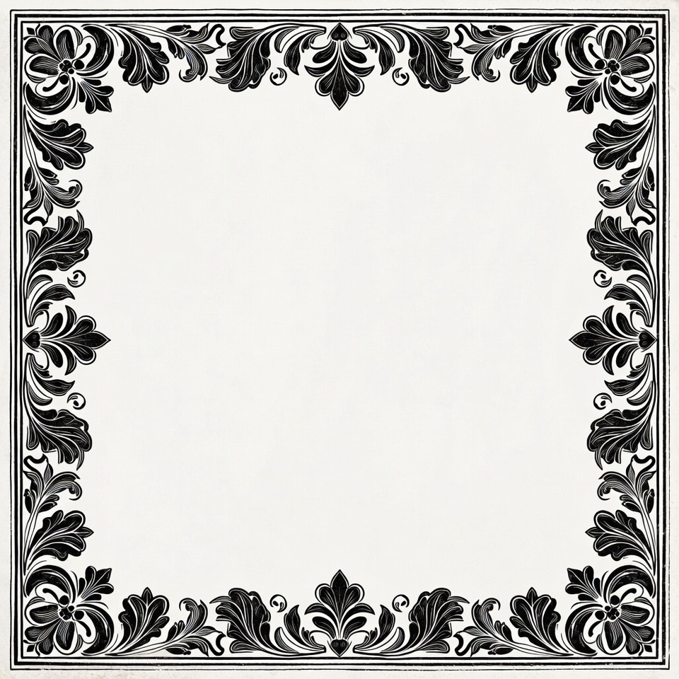 A black and white decorative border features floral patterns around a central blank area. The design offers room for text or images.