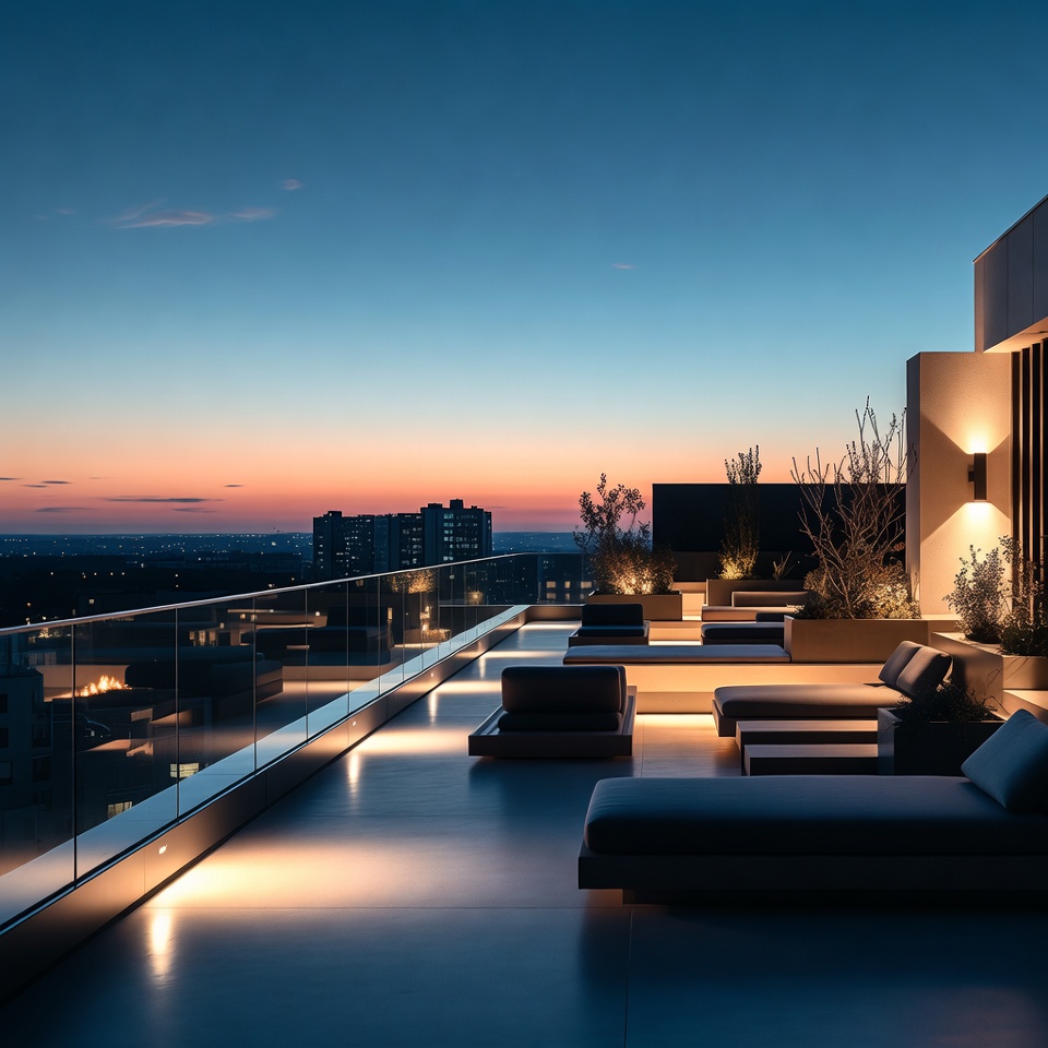 Rooftop lounge at sunset time