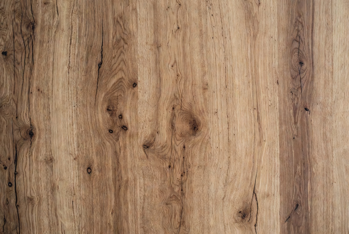 Detail of wood surface showing natural grain patterns and knots. The brown hues highlight the texture and uniqueness of the wood.