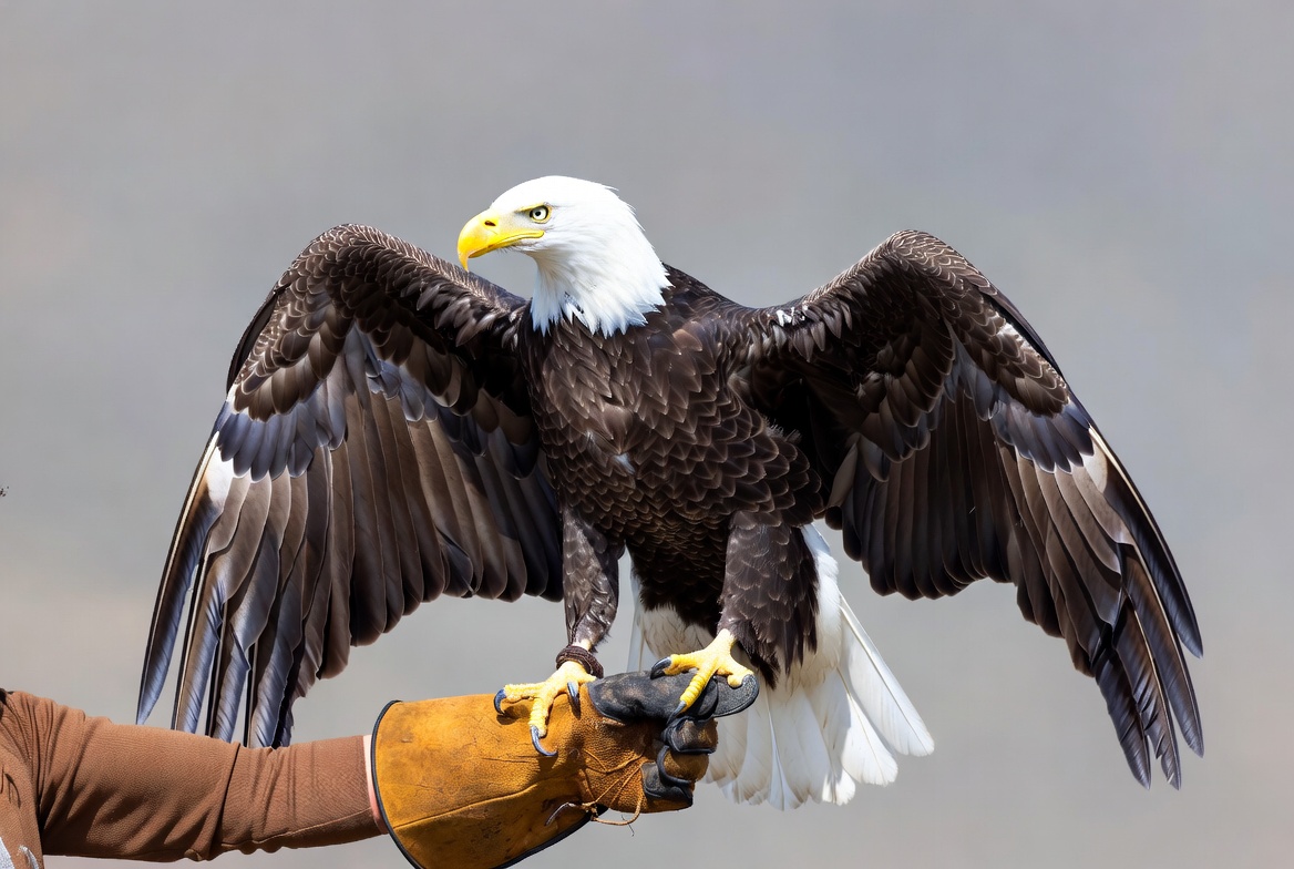animal, avian, bald eagle, conservation, display, falconer, feathers, glove, hand, hunting, large bird, nature, outdoor, predator, raptor, sky, talons, training, wildlife, wings