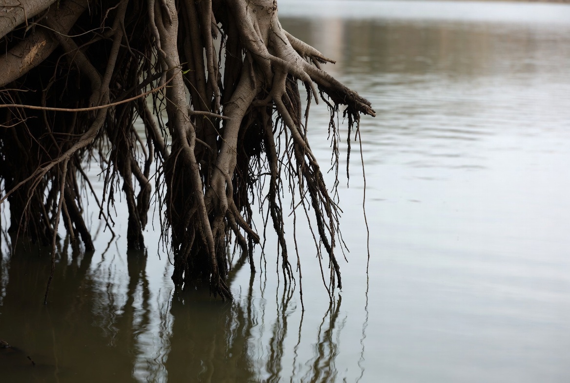 Roots in water at riverbank