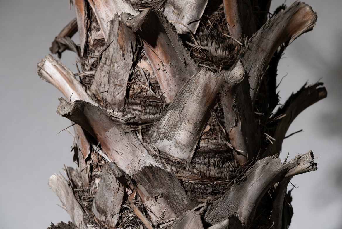 Palm tree trunk close-up with textured bark