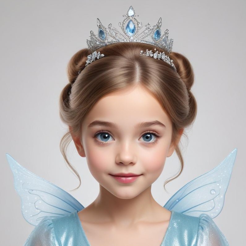 beauty, blue, celebration, child, costume, crown, dress, fantasy, girl, hairstyle, happy, innocence, jewelry, joy, magic, play, princess, smile, wings, youth