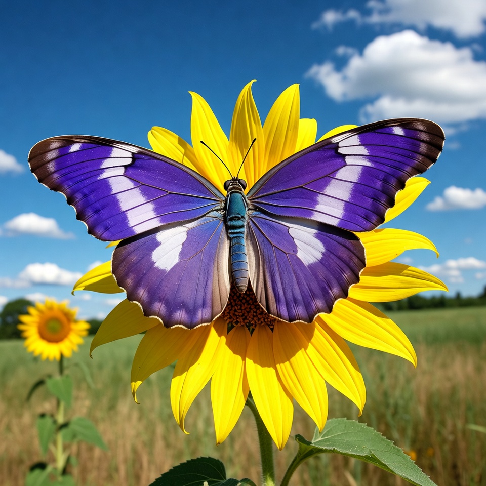 beauty, blue sky, butterfly, colors, environment, fauna, field, flora, flowers, garden, insects, landscape, nature, outdoor, pollinator, summer, sunflower, sunlight, wildlife, wings
