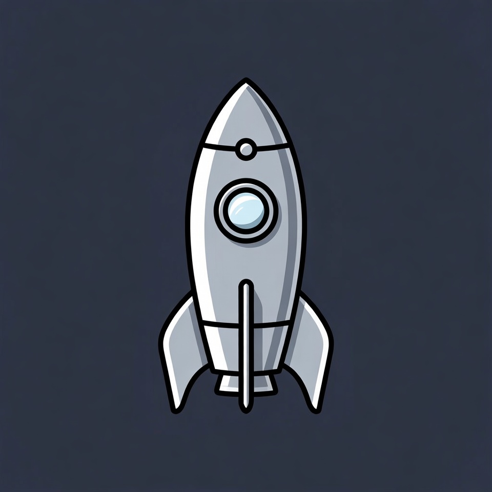 A simple rocket design is centered on a dark background. The rocket has a sleek shape and features basic details.