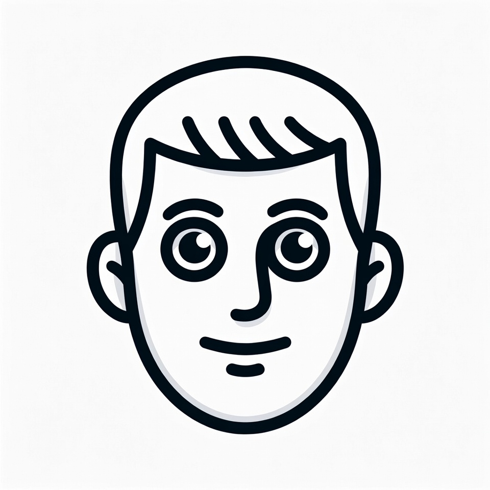 A simple line drawing shows a face with big eyes and a neutral expression. The design is clear and minimalistic without details.