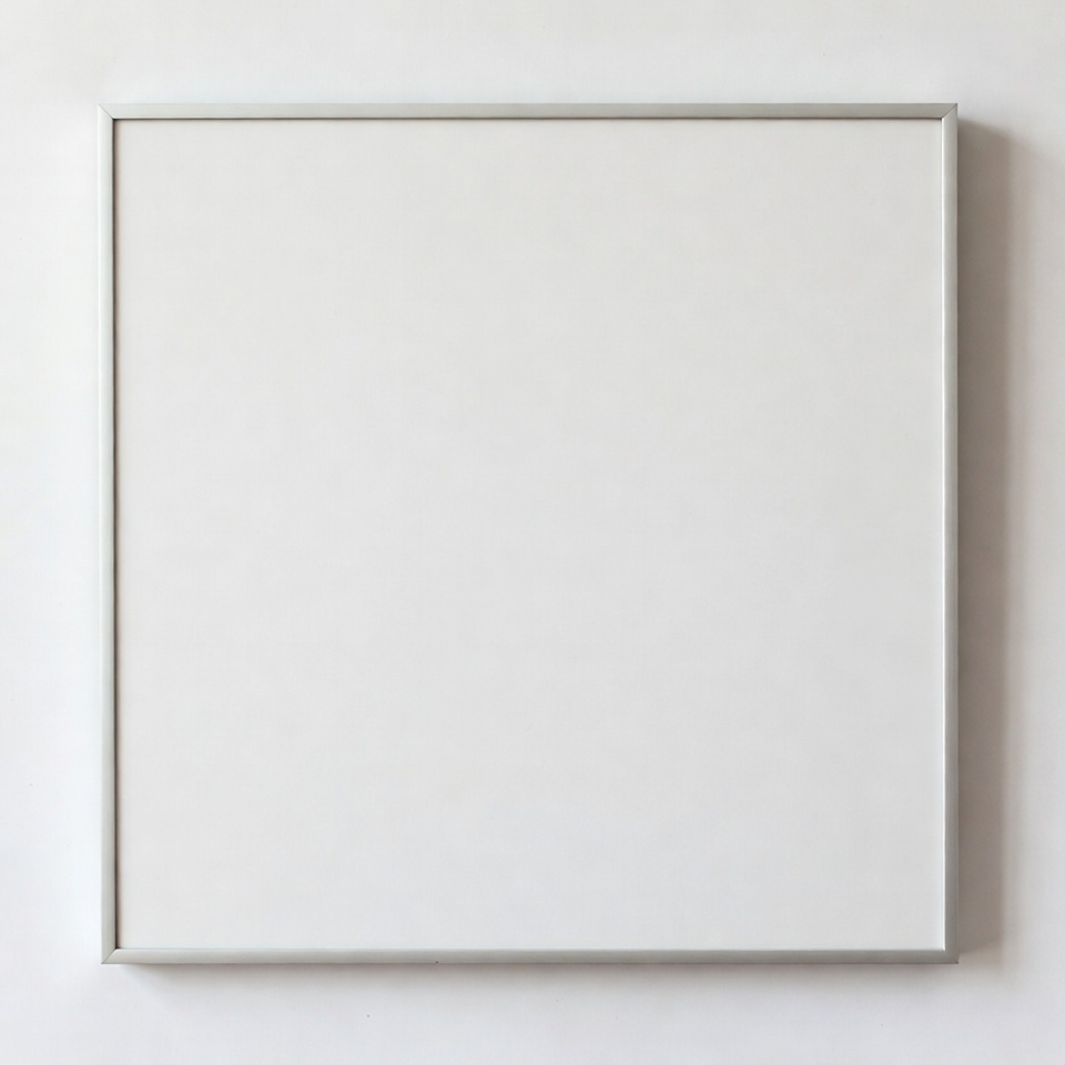 A blank canvas is displayed on a white wall. No artwork is shown, and the space appears clean and simple.