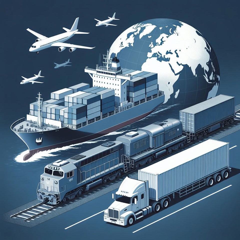 airplane, airport, cargo, commerce, delivery, distribution, freight, global trade, intermodal, international shipping, logistics, maritime, seaport, shipping, shipping container, supply chain, trade routes, train, transportation, truck