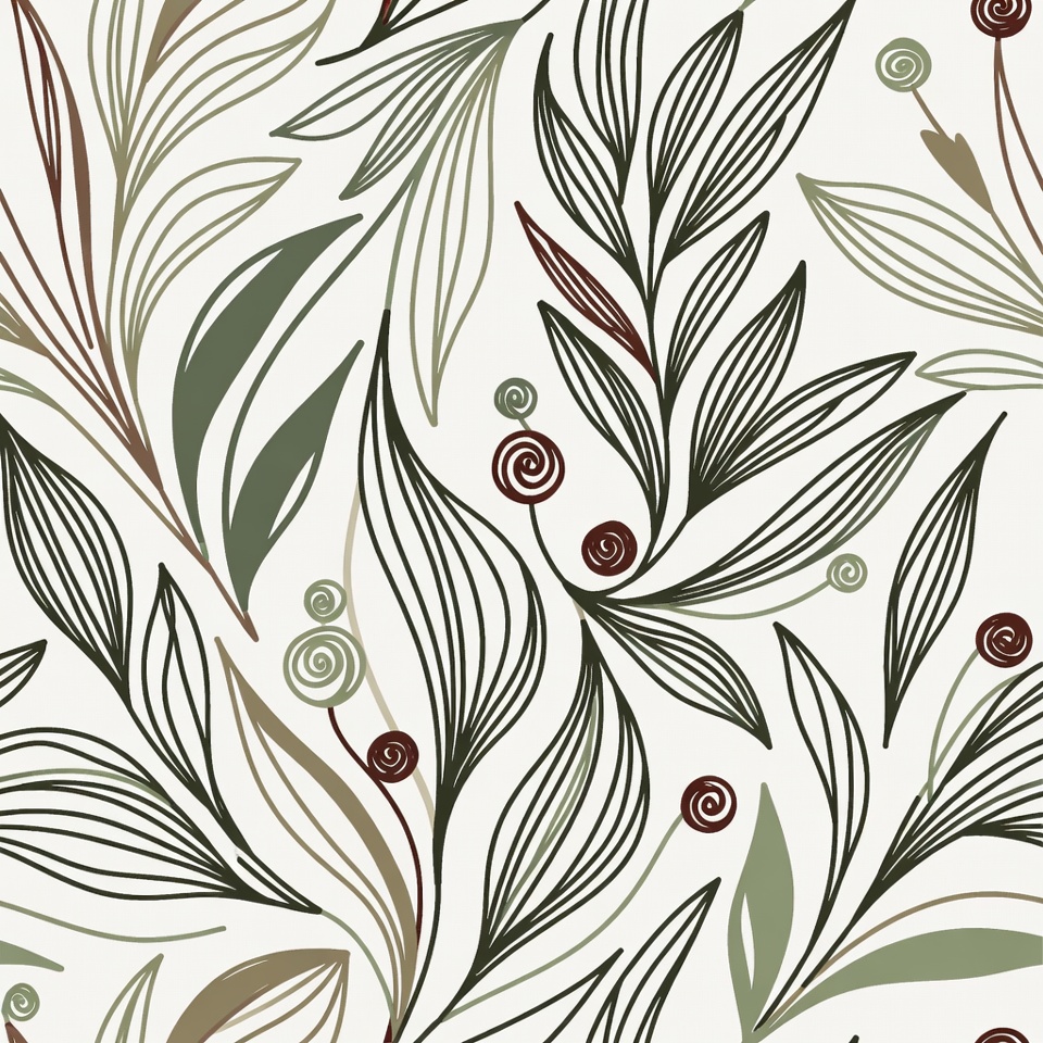 art, background, botanical, brown, decoration, design, flora, foliage, graphic, green, illustration, leaf, line art, nature, organic, pattern, shapes, swirl, texture, whimsical