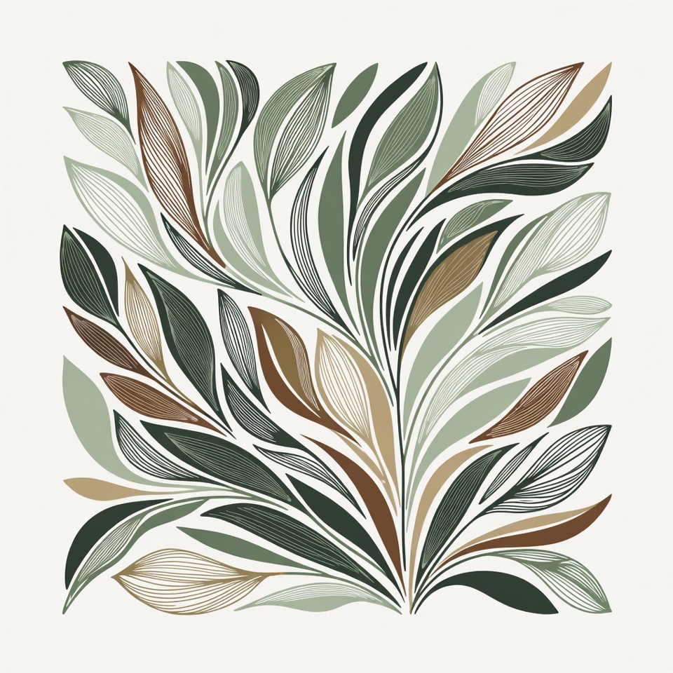 aesthetics, arrangement, art, botanical, brown, colors, decorative, design, foliage, graphics, green, illustration, leaves, lines, nature, organic, pattern, shapes, texture, white