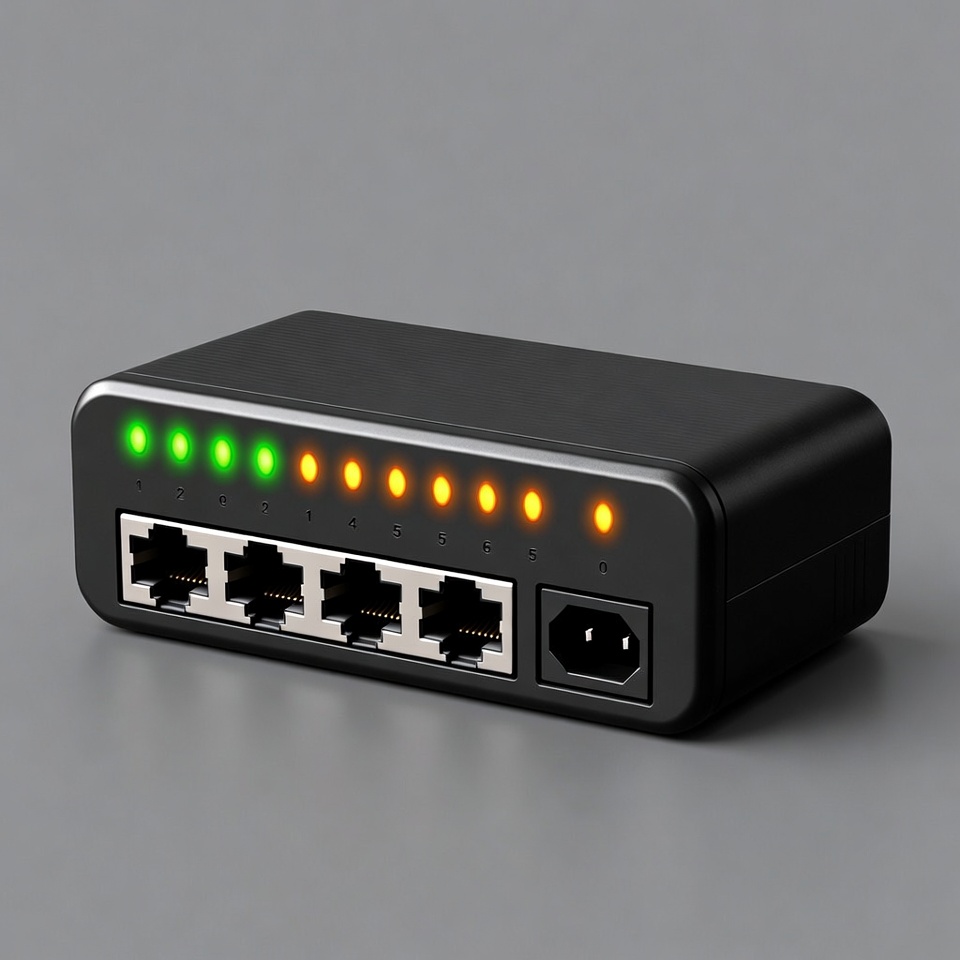 LED indicators, cable management, computer network, connectivity, data ports, data transfer, device management, digital communication, ethernet switch, gigabit switch, hardware installation, home network, internet connection, network devices, network equipment, networking, office network, power supply, signal strength, technology