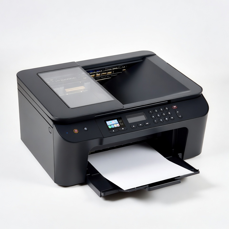 Black printer with white paper output