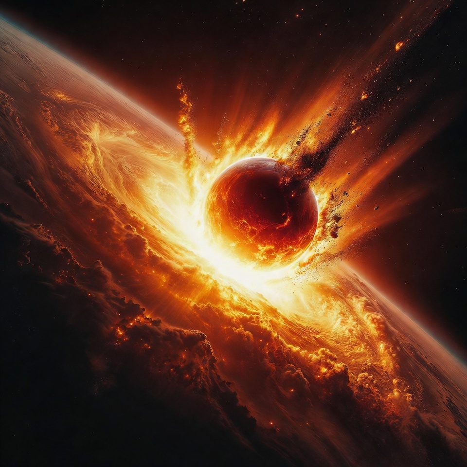 astronomy, celestial body, celestial event, collision, cosmic, debris, destruction, energy, event, explosion, fire, galaxy, gravity, impact, light, outer space, planet, science, space, universe