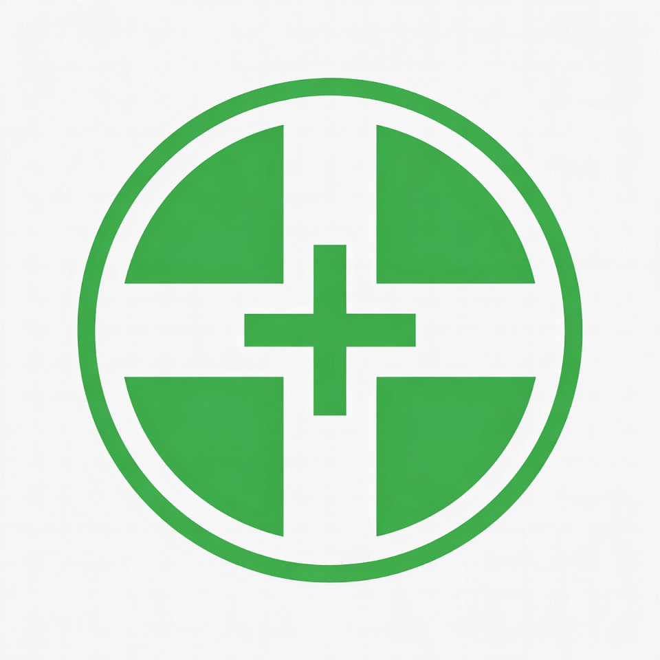 A green cross within a circle. It is often used to represent health services or medical assistance.