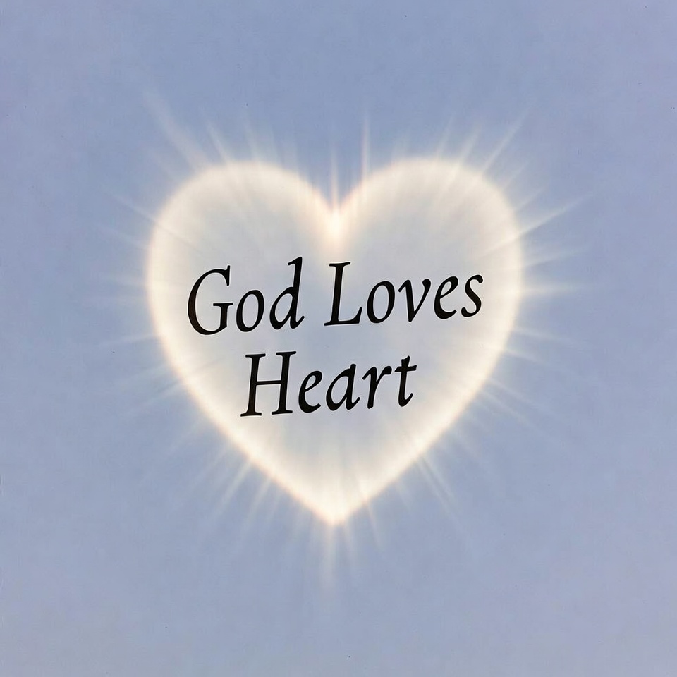 A heart-shaped cloud appears in the sky with the words God Loves Heart clearly visible.
