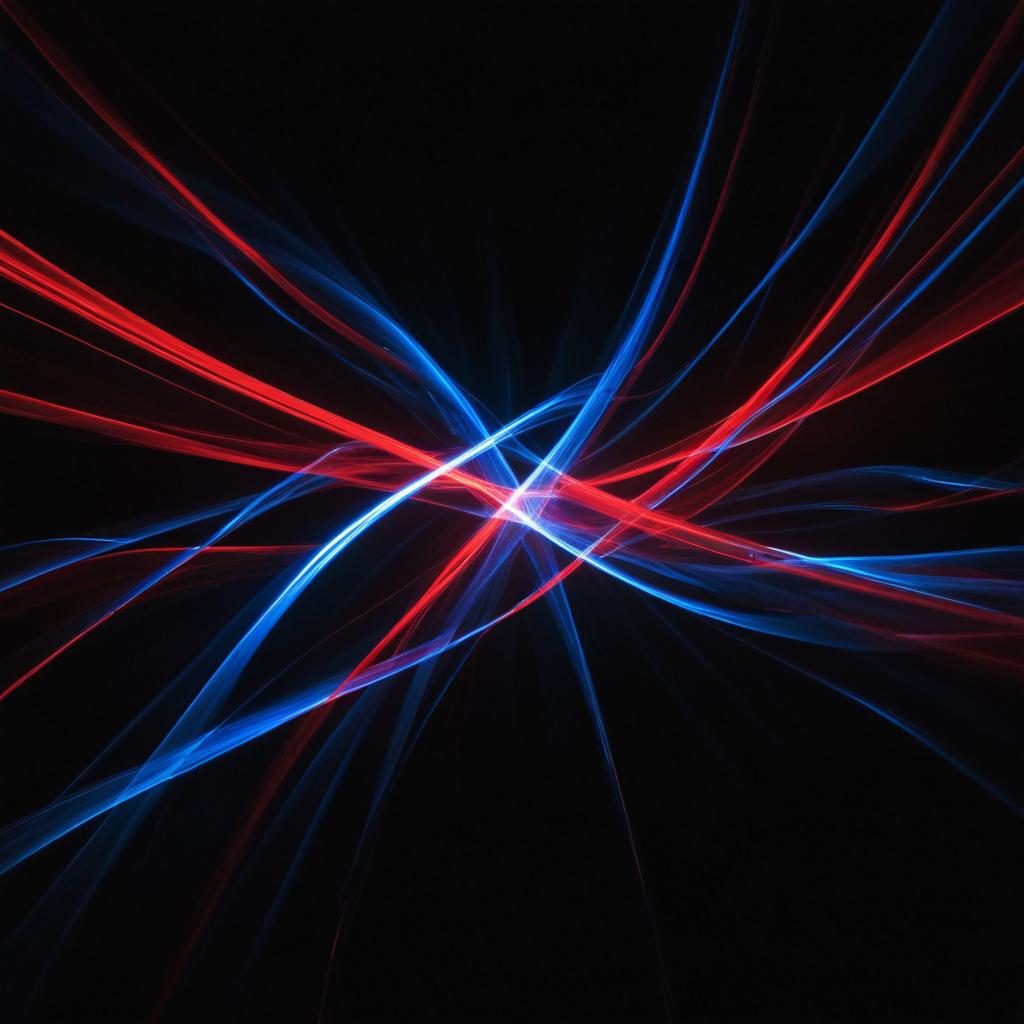 Bright red and blue light trails cross each other in a dark background, forming unique patterns and curves that capture attention.