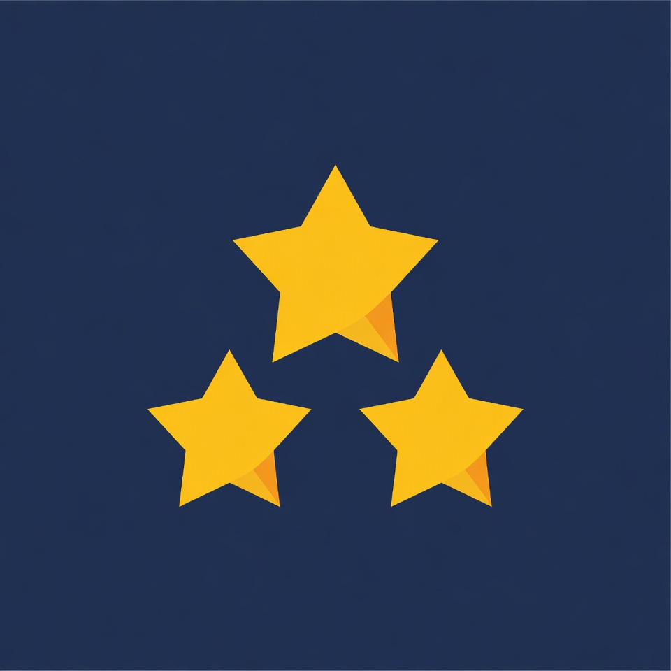 Three yellow stars are placed in a triangular formation on a dark blue background. The design is simple and bold, creating a striking visual.